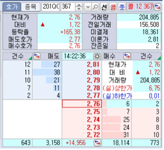 행사가 중 하나를 클릭시 다음과 같은 호가창이 나옵니다.